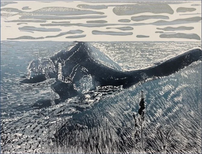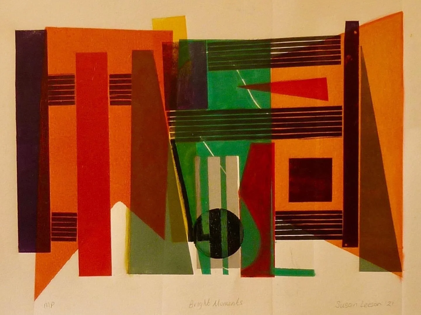 “Bright Moments” Block Linocut Print by Susan Leeson