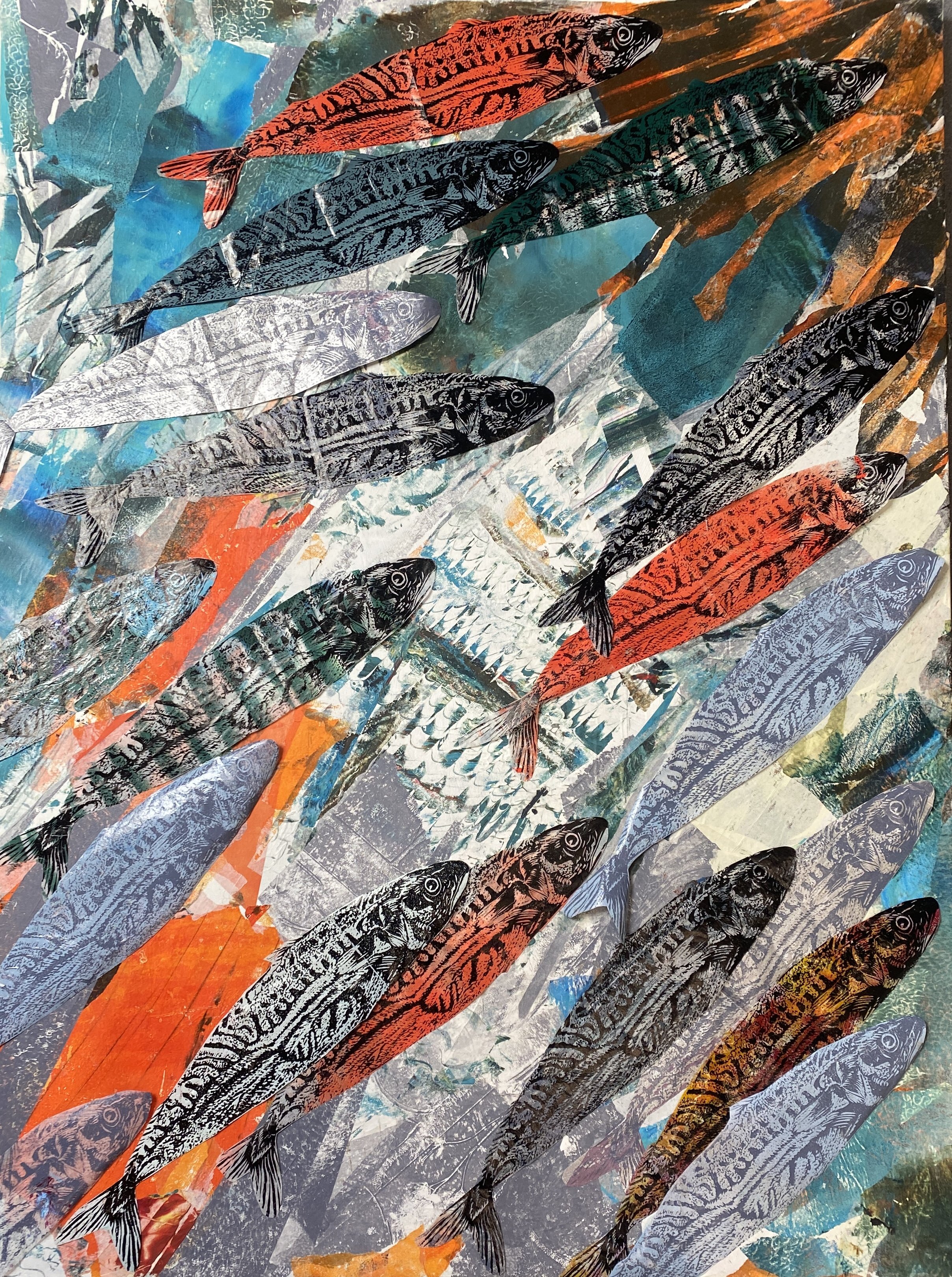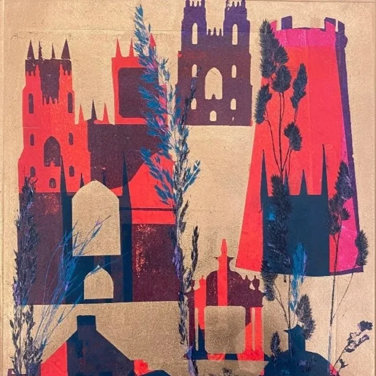 Susan employs hand-drawn and digital images to create linocut, etching, collagraph, and screen prints. Her work varies from a detailed exploration of texture to a minimalist approach exploring colour and shape. “I enjoy the challenge of analogue printmaking and the distinct minimalist aesthetic produced due to a limited palette.”