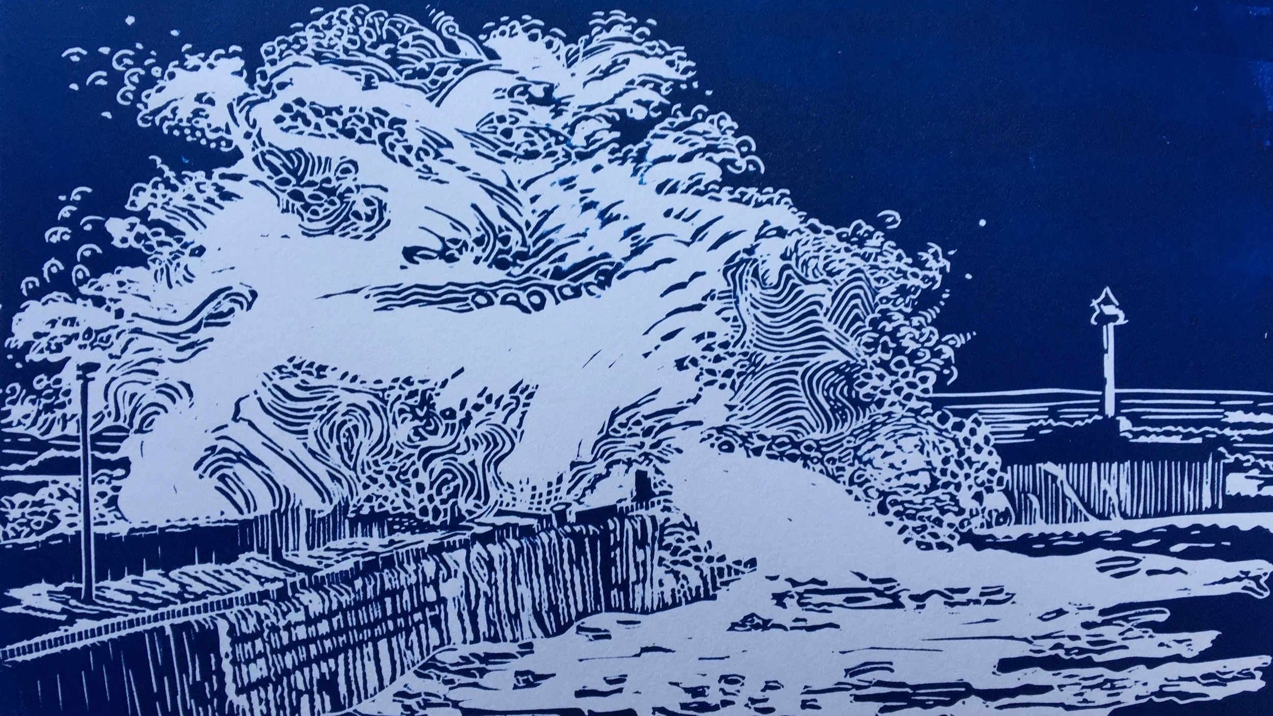 Eastgate Studio resident printmaker, Susan Leeson’s work investigates the environment and environmental issues, themes explored through a series of prints of the East Coast of Yorkshire and the theme of “water”.